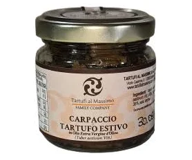 Carpaccio aus schwarzem Sommertrüffel in ‘Nativem Olivenöl Extra’ (Tuber Aestivum Vitt.) 80 g