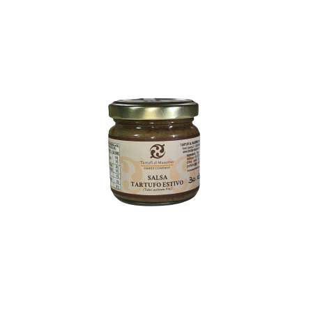 Die Sauce wird nur mit schwarzem Sommertrüffel, bekannt als ‘Scorzone’ (Tuber Aestivum Vitt.), in nativem Olivenöl extra zubereitet.